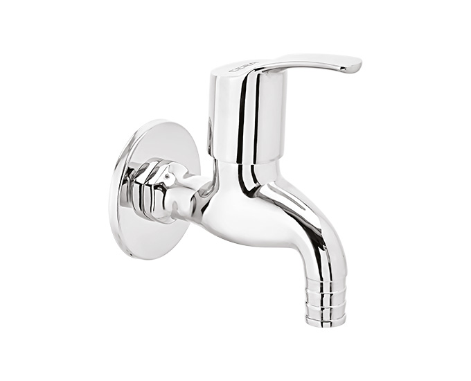 Bib cock with wall flange and nozzle